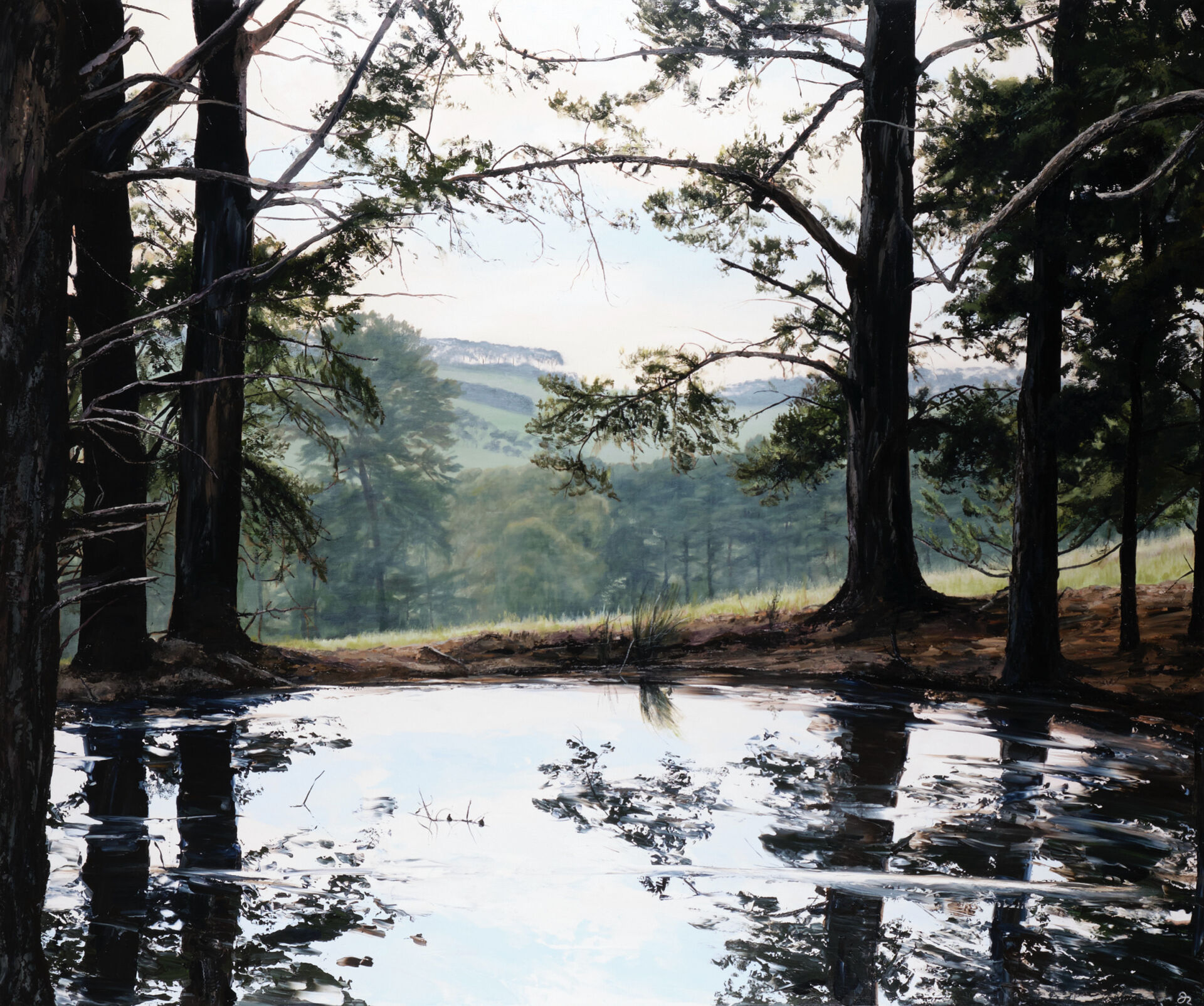 Jennifer Riddle's painting 'Donaldsons Dam' 2021, from the 'Lost and Found' solo exhibition, Scott Livesey Galleries, Prahran, Victoria, Australia.