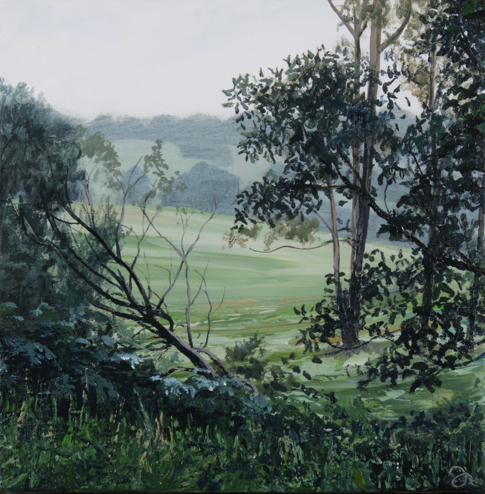 Artist, Jennifer Riddle's painting of 'Petrichor' 2021, from the solo exhibition, 'Lost and Found', Scott Livesey Galleries, Prahran, Victoria, Australia.
