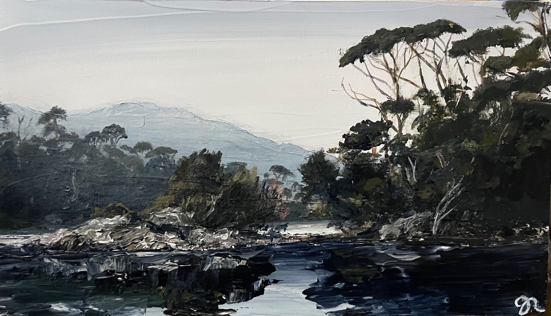 Jennifer Riddle's landscape painting of Southwest Tasmania