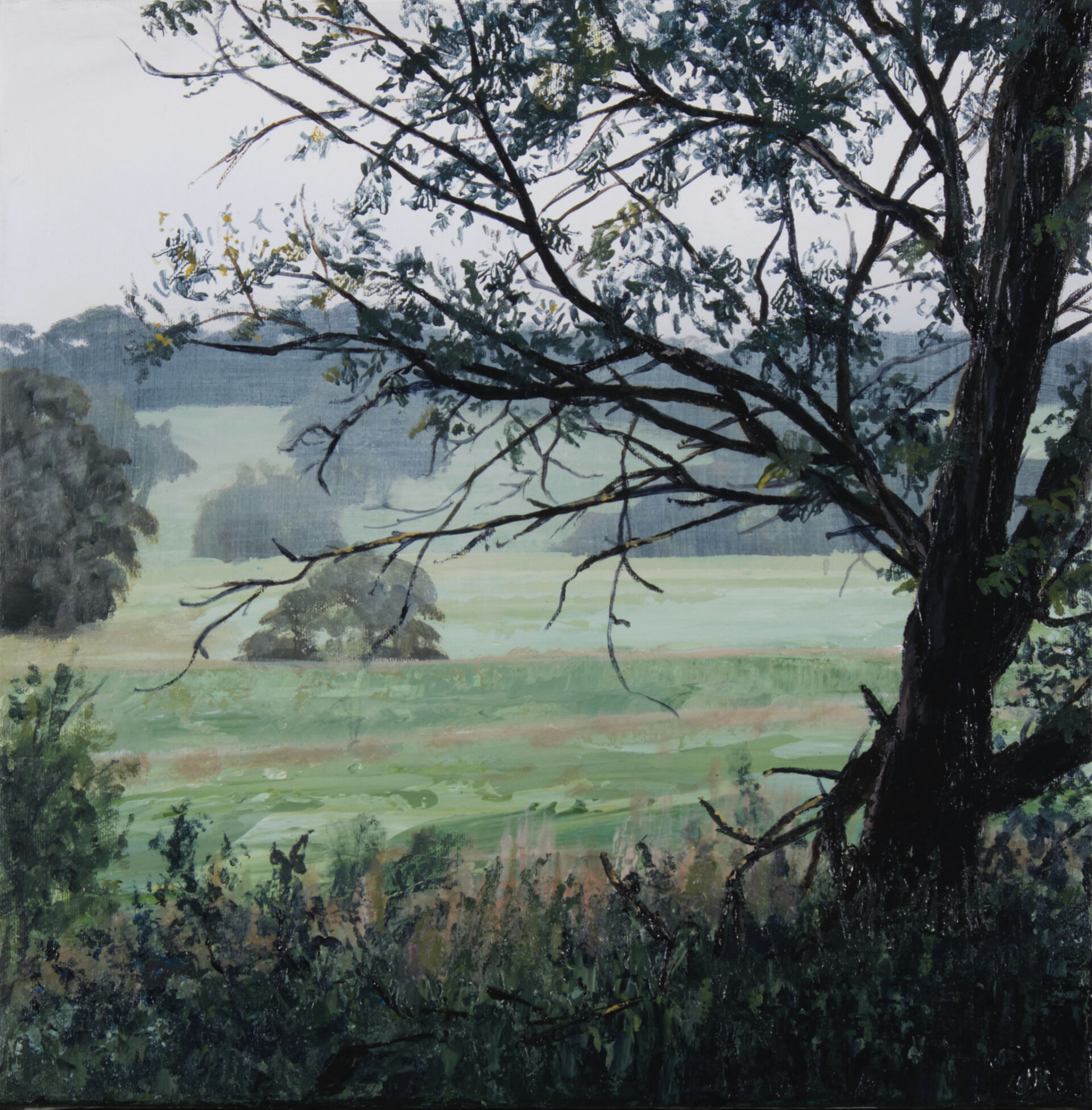 Artist, Jennifer Riddle's painting 'Wattle Tree's Repose' 2021, from the 'Lost and Found' solo exhibition, Scott Livesey Galleries, Prahran, Victoria, Australia.